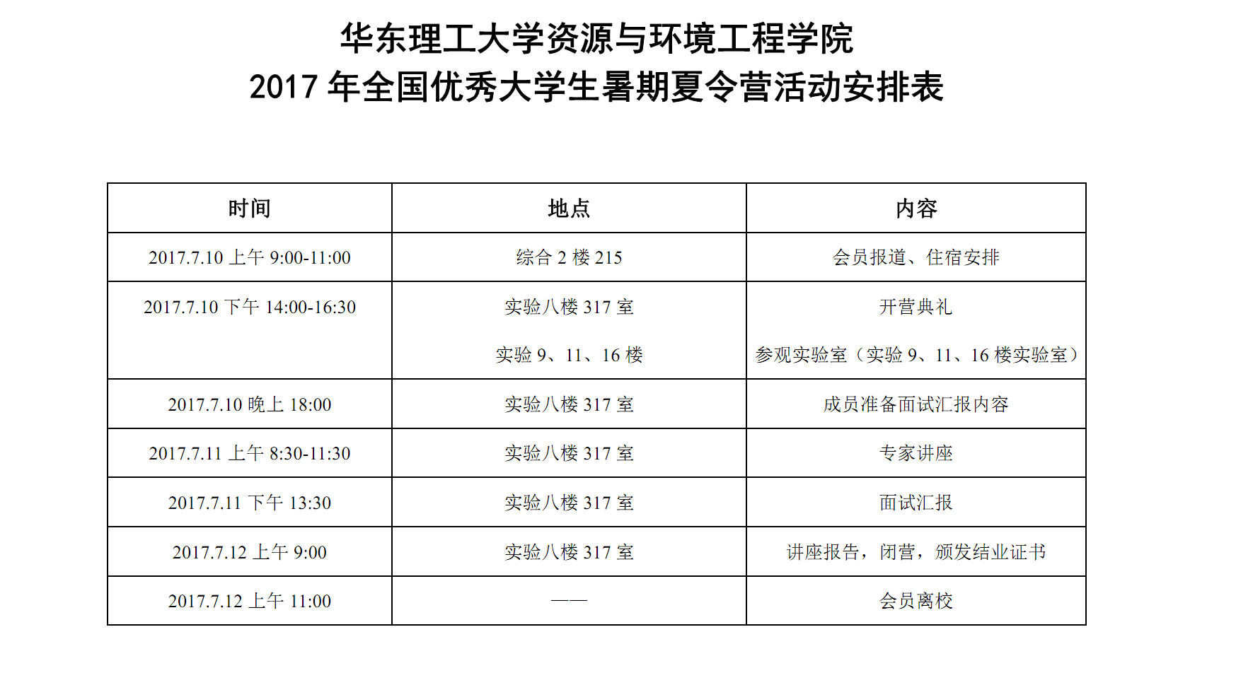 必赢242net官网2017年全国优秀大学生暑期夏令营活动安排表