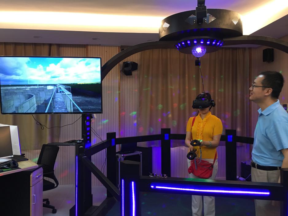 随后,代表团一行还体验了“污水厂VR教学实训”,对课程的设计开发和“上天入海”全方位感受水处理过程的教学效果给与了高度的评价并详细询问了一些技术细节,表示将学习华理的先进经验,将最新的科技融入课堂,提高教学质量。调研结束后,双方均表示互相学习到很多,希望今后进一步加强合作交流,相互促进。