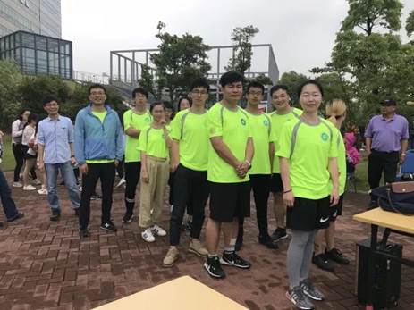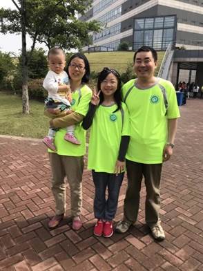 九点左右,在志愿者的指引下,校友们逐渐聚集在通海厅,领取比赛的服装。有的校友带全家一起来到华理,小朋友穿上比赛的衣服显的格外可爱。