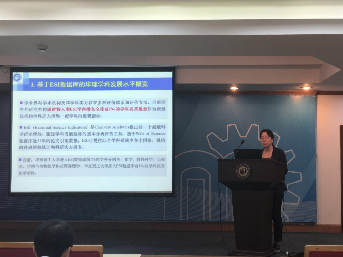 会议邀请了图书馆情报与科学服务部张慧老师作了题为“基于ESI和INCITES的华理必赢242net官网科研产出统计与学科态势分析”的报告。报告首先介绍了基于ESI数据库的华理学科发展水平概览,对标分析了我校环境与生态学科,同时还就必赢242net官网学科竞争力情况进行了分析,最后基于ESI学科发展给出了建议与对策。
