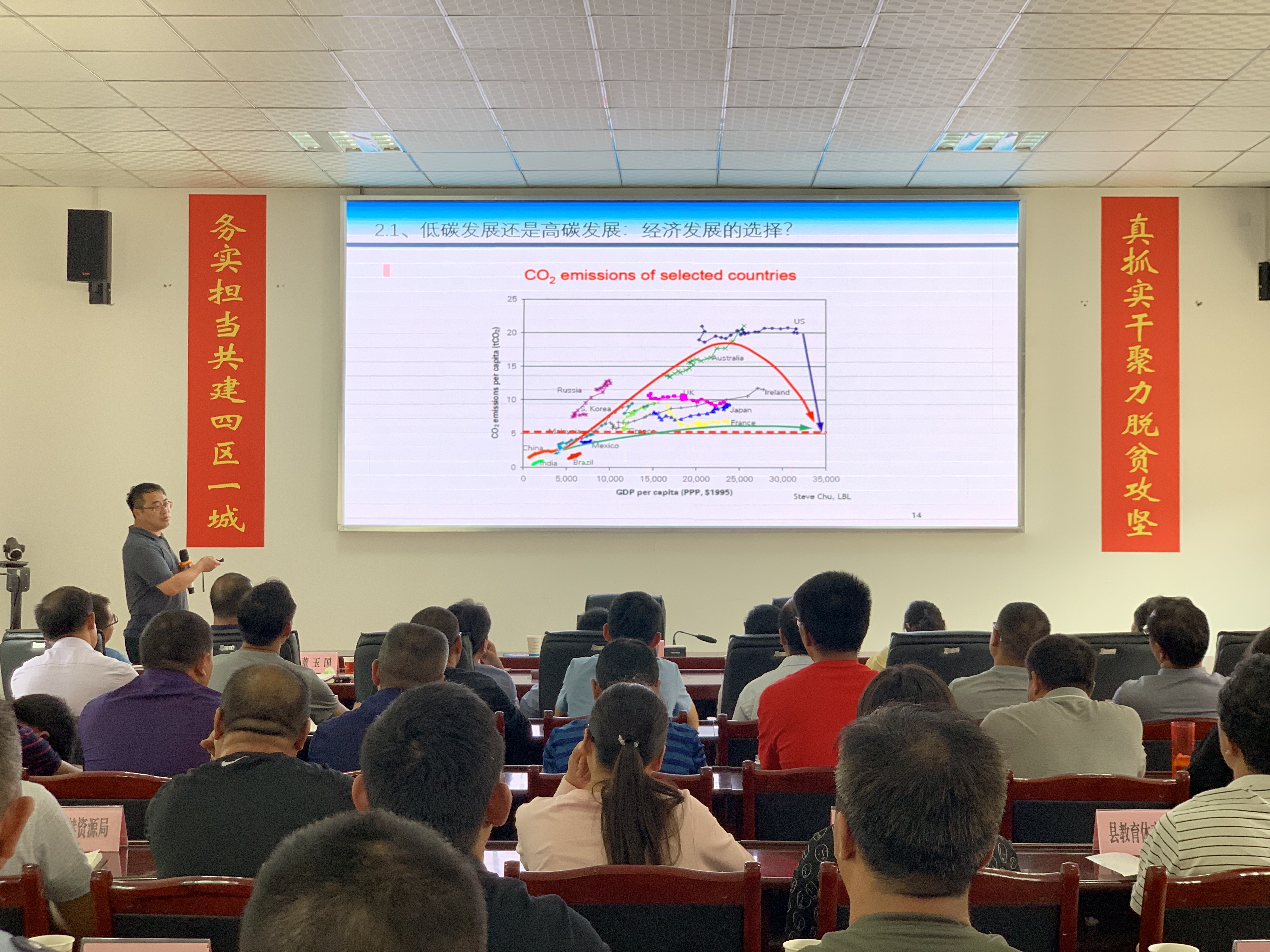 26日,修光利教授还受邀为全县直属单位、乡镇环保、应急及执法等单位的约100名代表做了《提升意识、集成科技、助力高质量发展》的主题报告,会议由副县长朱选高主持。修光利结合昆明地区产业特点分析了当前生态环境保护的形势,分享了生态文明建设的内涵、最新的标准发展态势和国内外先进环境技术的发展趋势。