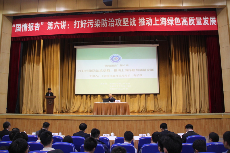 为深入学习贯彻党的十九大精神,准确把握打好防范化解重大风险、精准脱贫、污染防治三大攻坚战的深刻意义,10月16日下午,国情报告第六讲在徐汇校区逸夫楼报告厅举行,特别邀请我校85届校友、上海市生态环境局局长寿子琪带来主题为“打好污染防治攻坚战,推动上海绿色高质量发展”的报告。我校校长曲景平出席报告会,会议由校党委常委、副校长王慧锋主持。