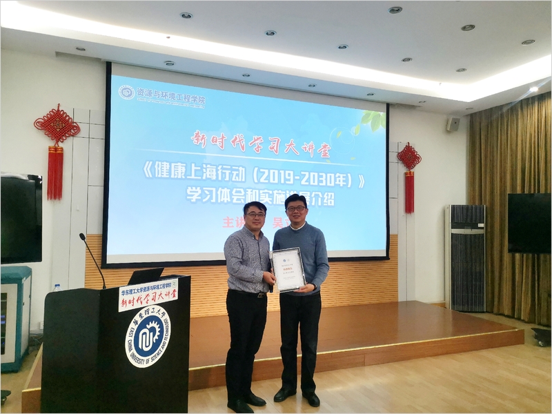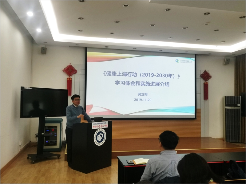 11月29日下午,必赢242net官网在徐汇图书馆201举办了第七期“新时代学习大讲堂”,特邀上海市健康促进中心主任吴立明为大家解读《健康上海行动(2019-2030年)》。学院教职工、学生党员和入党积极分子、党政班子成员参加报告会,会议由学院党委书记修光利主持。