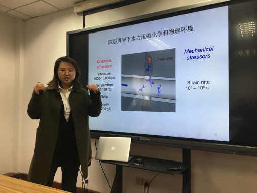 11月27号上午,明尼苏达大学环境土木地球科学与工程系助理教授熊博雅博士受邀来我校做了题为“Polyacrylamide degradation during hydraulic fracturing in the deep subsurface: implications to wastewater quality and membrane treatment”的学术报告。资环学院二十余名师生参加了报告会。