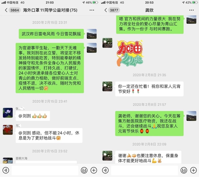 在全区正式募集公告前,刘剀校友第一时间建立了医院联络对接群,发布爱心需求,募集爱心物资,结交爱心朋友。