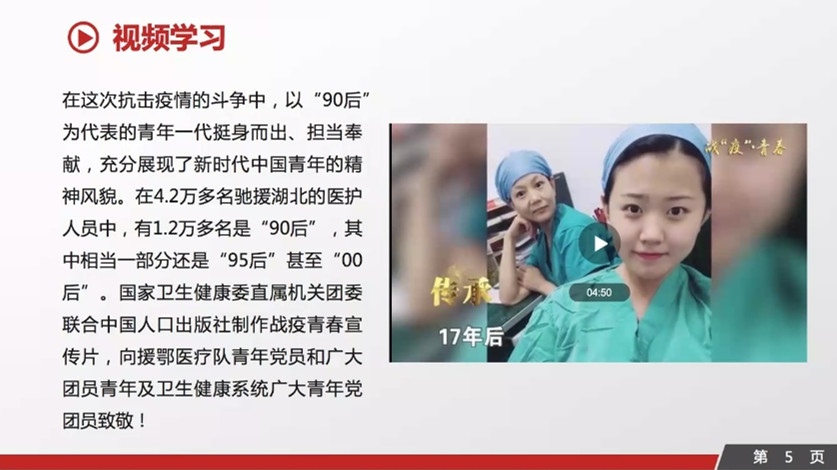 湖北临时党支部由留在湖北的40名学院师生党员组成,自2月初成立以来,积极发挥基层党组织战斗堡垒和党员的先锋模范作用,主动关心疫区学生心理、生活状态、学习状态,及时为大家排忧解难。支部党员认真学习了习近平总书记给北京大学援鄂医疗队全体“90后”党员的回信,畅谈作为90后如何让青春在党和人民最需要的地方绽放绚丽之花。在湖北黄冈的研究生党员吴晓翔谈到,青年一代医护工作者充分展现了新时代中国青年的精神风貌,作为研究生,将始终不忘科研报国的初心,为所从事的科研领域贡献力量。