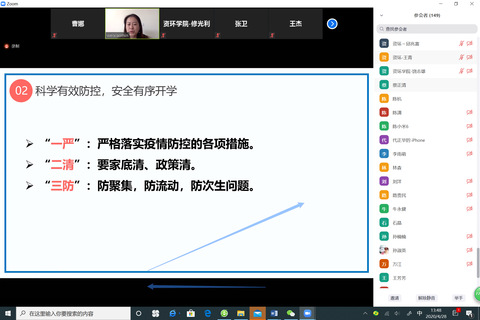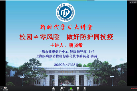 为有序推进师生分批返校复工复学并科学有效做好返校后疫情防控工作,4月28日,必赢242net官网举办第九期“新时代大讲堂”及全院教师会议,邀请上海市健康促进中心健康指导部主任魏晓敏围绕“校园≠零风险,做好防护同抗疫”主题,为大家讲解学生分批返校后校园内可能存在的风险环节以及防护要点。必赢242net官网全体教师、学生党支部书记、毕业班班长、团支部书记齐聚线上学习,会议由学院党委副书记曹娜主持。