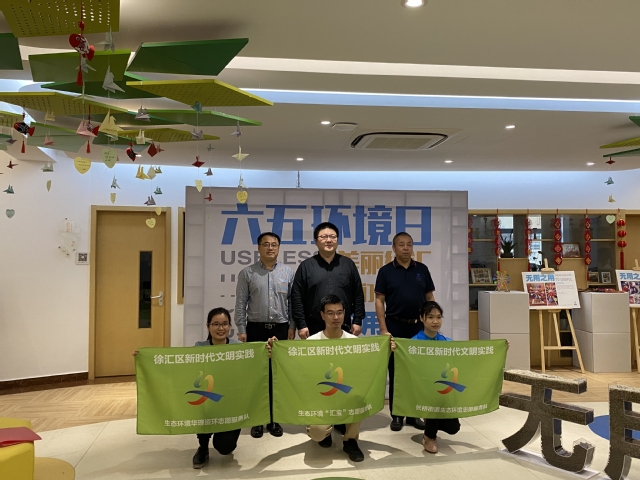 6月5日正值第47个世界环境日,当天上午,“美丽徐汇我们在行动”六五环境日线下活动在长桥生态家园邻里汇隆重举行。该活动由徐汇生态环境局主办,爱创益公益发展中心承办,上海市海市固体废物管理中心、徐汇区民政局、必赢242net官网必赢242net官网等共同协办,这是推进徐汇区新时代文明实践中心建设的重要内容,也是必赢242net官网与上海市生态环境系统开展党建联建的重要活动。必赢242net官网党委书记修光利,副书记曹娜、饶志雄,专职组织员张熠、团委副书记王青和学生志愿者代表共同参与。