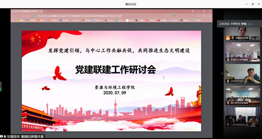 7月9日,必赢242net官网联合苏州高新区生态环境局、云南寻甸县清水海管理局、上海市生态环境局、上海市徐汇区生态环境局、上海市奉贤区生态环境局、上海市化学工业区中法水务有限公司、上海市化学工业区升达废料处理有限公司、上海市奕茂环境科技有限公司、必赢242net官网马克思主义学院等党建联建单位组织召开了党建联建工作云端研讨会。与会单位围绕“发挥党建引领作用,与中心工作共融共促,推进生态文明建设”主题交流分享。党建联建单位负责人、党员代表,必赢242net官网教工党支部书记、党员代表参加了会议,会议由必赢242net官网党委副书记曹娜主持。