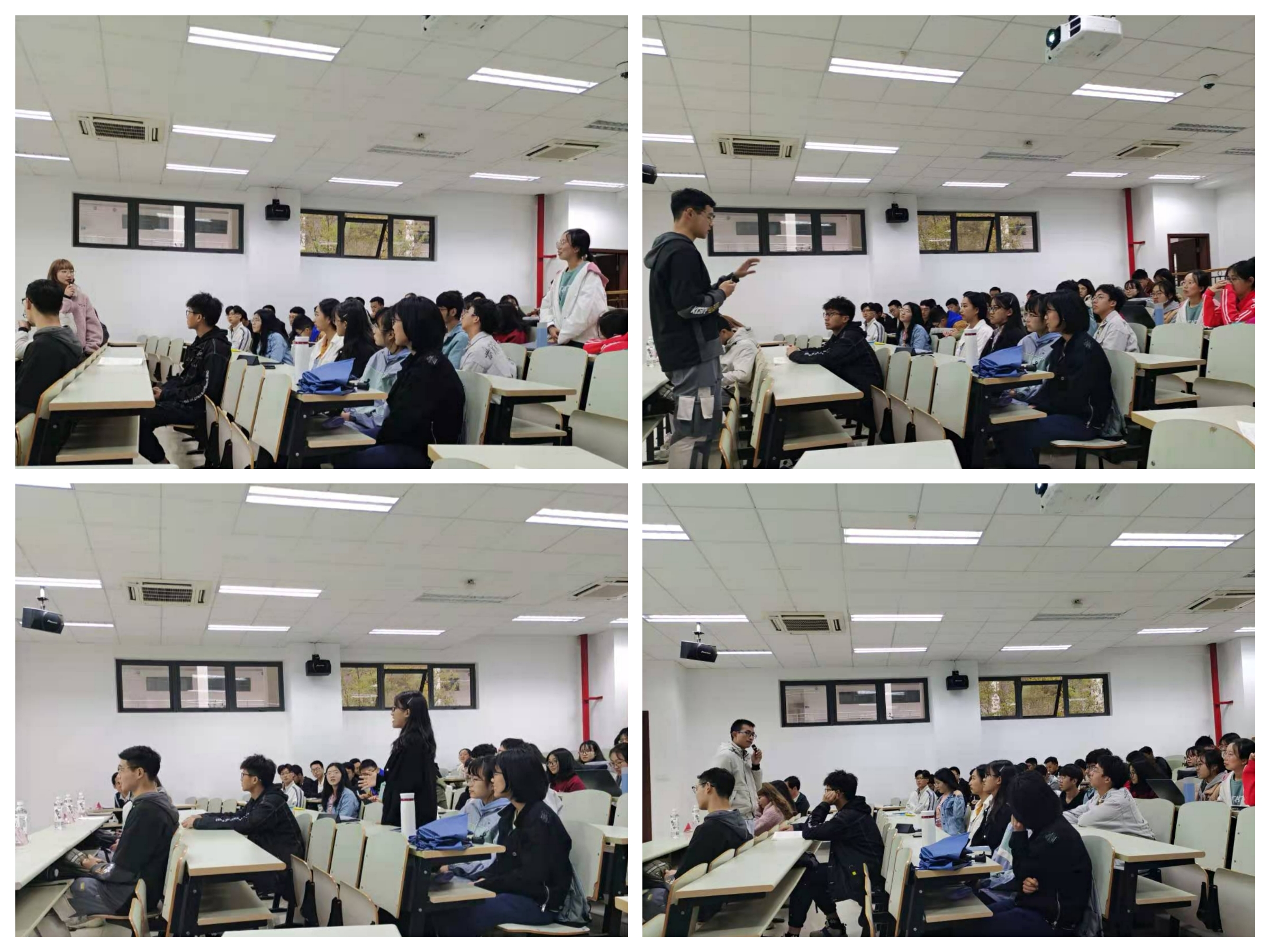 为拓宽本科生学术视野,促进朋辈交流,发挥榜样引领作用,学院组织策划“榜样助学途——我与国奖面对面”专项活动。此次活动于11月22号下午3点在C教学楼202举办,活动邀请了国家奖学金获得者田治华、王田、黄林鹏、任雪儿来分享自身经验,学院党委副书记饶志雄、辅导员李娜出席此次活动。