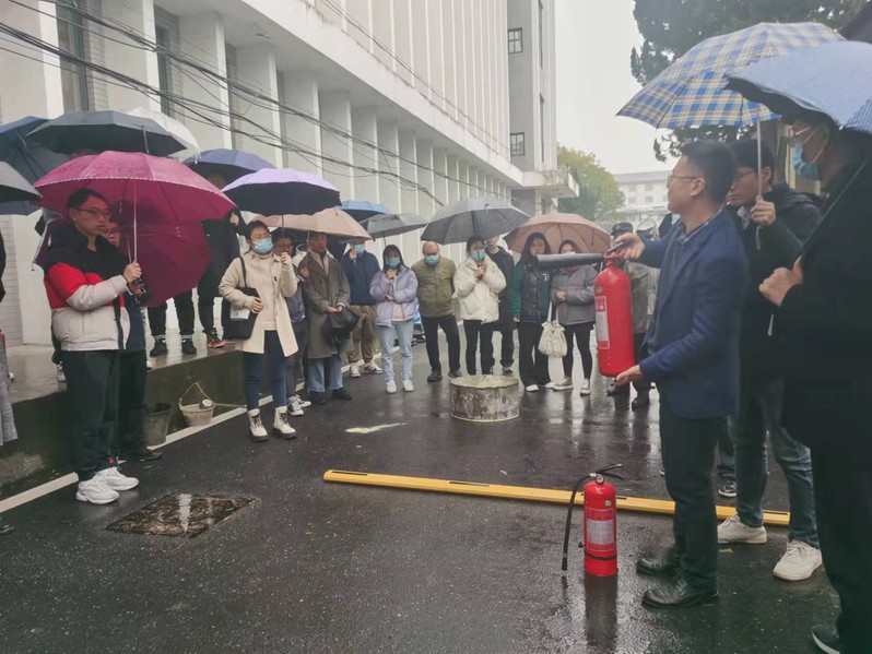 为进一步增强师生员工的消防安全防火意识,切实提升师生消防应急处置能力,2021年12月12日下午,在图书馆西侧广场,学校保卫处同志冒雨为国家盐湖资源综合利用工程技术研究中心师生进行消防安全教育和灭火器使用培训,并指导大家实际操练。安全教育培训由校保卫处消防安全管理岗负责人段凯洋主持,中心主任于建国教授等90余名师生参加了培训。