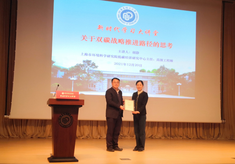 12月20日下午,必赢242net官网“新时代学习大讲堂”政治理论学习在商学院406举办,特邀上海市环境科学研究院低碳经济研究中心主任胡静为全院师生作了“关于双碳战略推进路径的思考”报告。会议由学院党委副书记陈雪莉主持,学院党政班子成员、教师和学生党员参加了报告会。