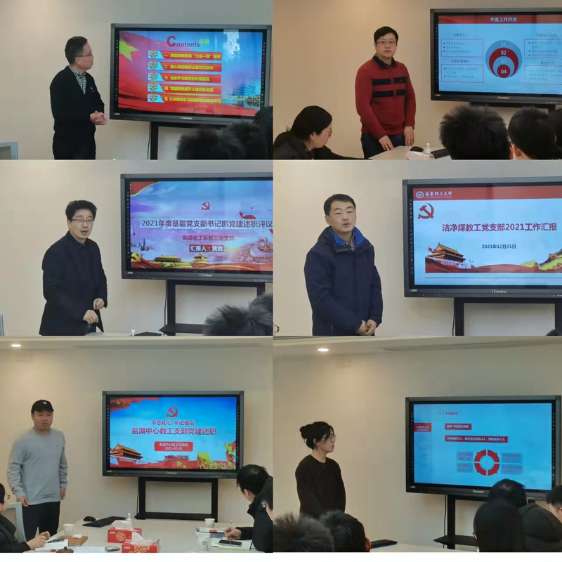 5名教工党支部书记、1名本科生党支部书记和9名研究生党支部书记重点围绕党史学习教育开展情况、学院党建质量提升工程专项资助项目进展、学习强国学习推进情况等进行了现场述职评议交流。各位支部书记准备充分、材料详实,详细汇报和展示了各党支部的建设情况以及亮点特色工作。