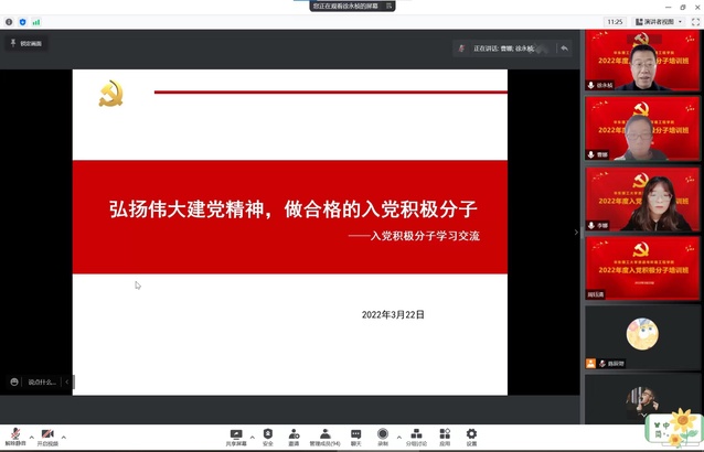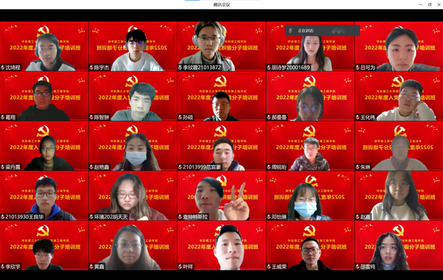 3月22日下午,必赢242net官网2022年度入党积极分子培训班在云端开班。特邀校离退休工作党委副书记徐永桢主讲,学院党委副书记曹娜、研究生辅导员孙茜、本科生辅导员李娜及170余位入党积极分子同学共同参与学习。