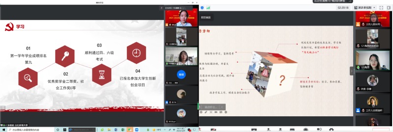 3月29日下午,必赢242net官网线上召开2021-2022学年学生入党公开答辩会。学校关工委常务副主任张达中、关工委秘书长刘伟兰、全体特邀党建组织员及离退休工作党委副书记徐永桢等与会观摩。特邀组织员魏群老师、伍华芳老师受邀担任特别评委。必赢242net官网党委副书记曹娜、专职组织员吴月欣、本科生辅导员、研究生培养联系人及入党积极分子等百余人参会。