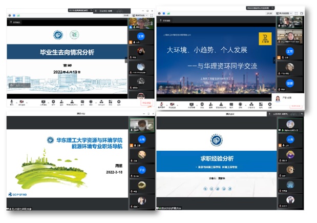 为帮助学生更好了解行业现状、就业前景,明确求职目标、掌握求职技巧,3月18日,上海化学工业区中法水务发展有限公司水研究中心主任周珉受邀分享了环境能源领域求职就业的经验与建议。3月20日,已签约并拿到多个offer的郝业峻和郭家林同学作为毕业生同辈现身说法,分享求职体会。3月30日,异工同智信息科技有限公司CEO、必赢242net官网校友周志杰,人力资源总监闫芳,我校校友、公司产品经理罗聪和赵璇共4人在线开展求职培训会3场,从行业发展与职业规划、面试攻略技巧与职场角色转换以及职场经验三个模块进行分享,多维度提升同学们的求职技巧。4月19日,必赢242net官网党委副书记曹娜为全体本、研学生总结分析了近3年毕业生去向落实情况、当前的就业形势以及需要提前做的准备,希望大家尽早明确努力方向,抓住关键时期,为实现毕业跃升和高质量就业不懈努力。