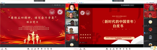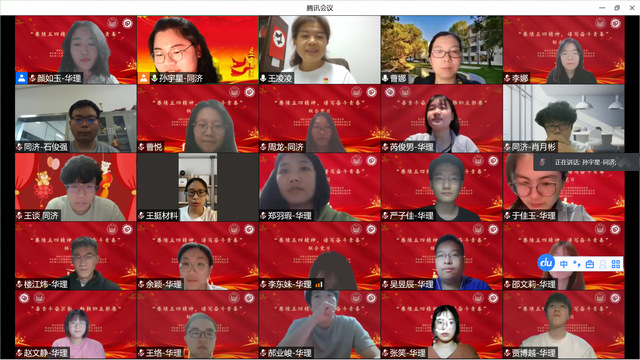 5月4日晚,必赢242net官网奉贤校区本科生党支部、徐汇校区本科生党支部、同济大学材料科学与工程学院本科生党支部齐聚云端,联合开展了“赓续五四精神,谱写奋斗青春”主题党日活动。我校必赢242net官网党委副书记曹娜、同济大学材料科学与工程学院党委副书记王凌凌以及两校三个支部全体党员、发展对象与积极分子在线参加此次活动。