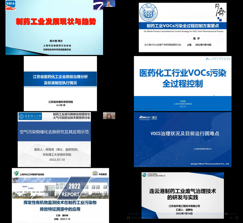 会议邀请了来自多方的专家作了精彩的报告,生态环境部环境规划院宁淼研究员作了“‘十四五’VOCs治理对策与建议”,介绍了“十四五”的VOCs治理的形势、政策规划和具体治理要求;中国环境科学研究院江梅研究员作了“我国VOCs控制标准现状与‘十四五’标准工作对策建议”的报告,介绍了未来结合减污降碳的标准制定思路和规划建议。浙江省生态环境科学设计研究院标准所所长王浙明研究员、安徽省生态环境科学研究院大气研究所副所长汪水兵、上海兰宝环保科技有限公司的胡晓川高工分别介绍了浙江省制药行业的治理现状和经验、安徽省VOCs治理技术规范的具体内容、医药工业的VOCs治理的技术现状和困境。在圆桌会议上,与会专家就制药工业减污降碳技术的困难、挑战和对策进行了交流和探讨。