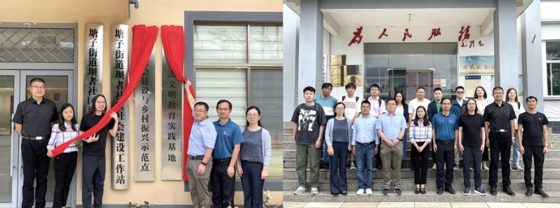 7月22日,在副县长饶志雄、塘子街道党工委书记范露、塘子街道塘子社区驻村第一书记沈峰等同志的陪同下,调研团与必赢242net官网社会与公共管理学院的师生代表一同参观了社区综合文化服务中心、党员活动室、“小花梨”广场、凤龙湾特色小镇等场所,详细了解了“一镇带三村”的规划和生态文明实践的成效。随后,必赢242net官网生态文明教育实践基地挂牌仪式在社区文化服务中心举行。双方将依托基地开展生态文明宣传和实践活动。
