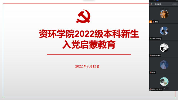 同时,开展“新生入党启蒙教育”,邀请学院党建负责教师李娜作为主讲人,通过对入党流程的详细梳理,培养新生对党组织的正确认识,引导其确立正确努力方向。环境191班楼江炜同学作为优秀学生党员代表,与新生们分享了入党初心,结合必赢242net官网“师生河长制”工作,介绍了必赢242net官网成立“必赢242net官网习近平生态文明思想研究会”的相关工作,号召资环新学子为建设美丽中国贡献力量。