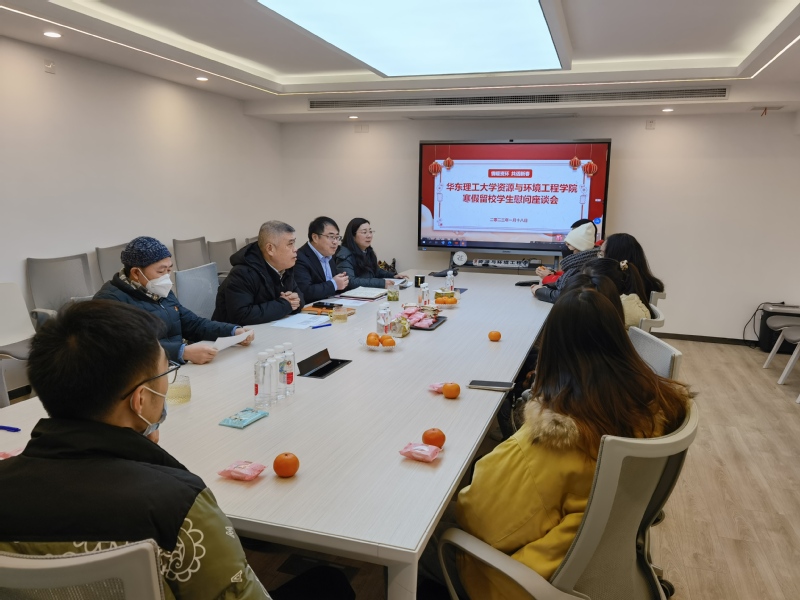 接着,修光利代表学院向寒假留校学生送上新春祝福,并嘱咐同学们要健康作息,多与家人沟通联系;加强与学院联系,有困难要及时联系辅导员和导师;做好个人防护,照顾好自己身体健康,过一个充实且健康的寒假。会上,大家还共同欣赏了19级环境工程专业本科生陈刘雯手书的春联和新春祝福,共祝新年学校和学院各项事业蒸蒸日上、欣欣向荣。