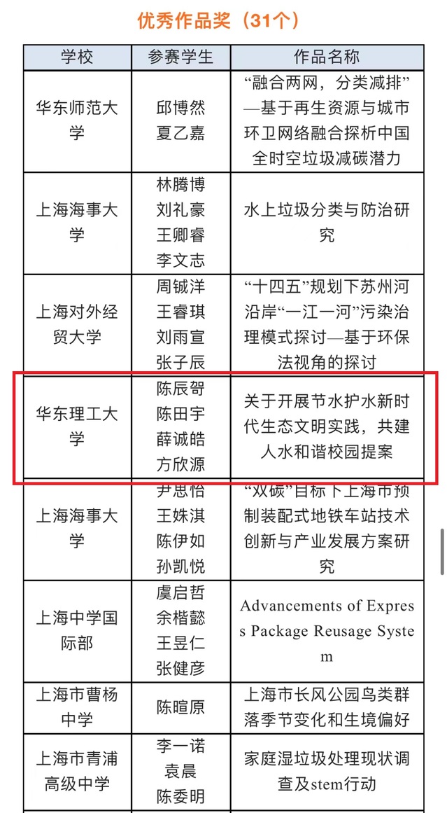 2月17日,由上海市教育委员会等十部门举办的2022年上海市青少年“双碳”方案提案大赛评审结果正式对外公布。本届大赛面向全市大中小学生,设“科技发明类”和“实践调查类”两个赛道,共收到来自全市115所大中小学校的229份作品,同学们立足自身,发掘、研究身边的“绿色”议题,围绕垃圾分类、节能降碳、生物多样性、资源循环利用等领域,提出相对应的解决方案。