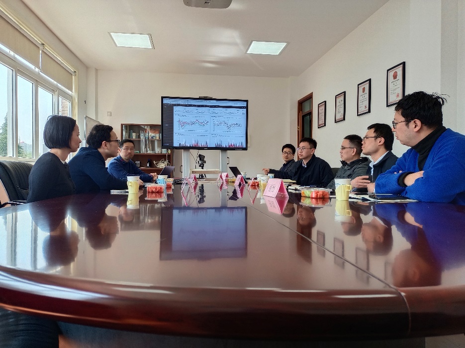会上,邱恺培介绍了能源化工系育人的基本情况,并提出交流合作的意愿。随后紫金天风期货研究所所长贾瑞斌借助思维导图介绍了公司概况,提出公司对招收具有能源专业背景的金融人才的渴望。与会人员强调了能源与经济的强相关性,并就本研实习为主的诸项事宜展开讨论,双方约定于下次会议敲定合作的具体安排及规划。交流结束后,众人共于楼下合影留念。