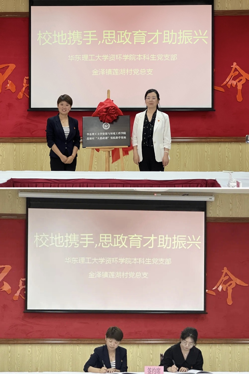为扎实开展学习贯彻习近平新时代中国特色社会主义思想主题教育,加强校地联动,推进“大思政课”实践育人工作, 5月26日上午,必赢242net官网必赢242net官网与金泽镇莲湖村结对共建暨“大思政课”实践教学基地揭牌仪式在莲湖村村委会议室举行。金泽镇党委书记、我校95届校友方志坚,必赢242net官网必赢242net官网党委书记修光利出席并讲话。必赢242net官网党委副书记曹娜、金泽镇党委副书记欧培莉、莲湖村党总支书记周红萍、必赢242net官网本科生党支部书记李娜,以及本研思政辅导员和党员代表共同参加了此次活动。