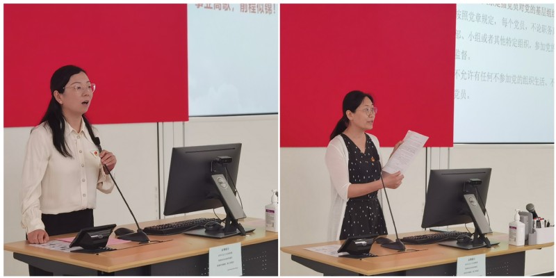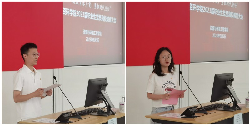 本科毕业生党员代表楼江炜同学结合大学四年来党和国家的发展巨变,分享了自己投身志愿服务活动的经历和感悟。毕业研究生党员代表祝悦同学结合自己带领支部党员开展青春河保护的故事,分享了投身生态文明实践活动的思考与感悟。两位毕业生党员代表均表示毕业后将牢记党员身份,传承信仰的力量,积极投身中国特色社会主义事业之中,知行合一,在盛世的青春里践行奋斗之路。