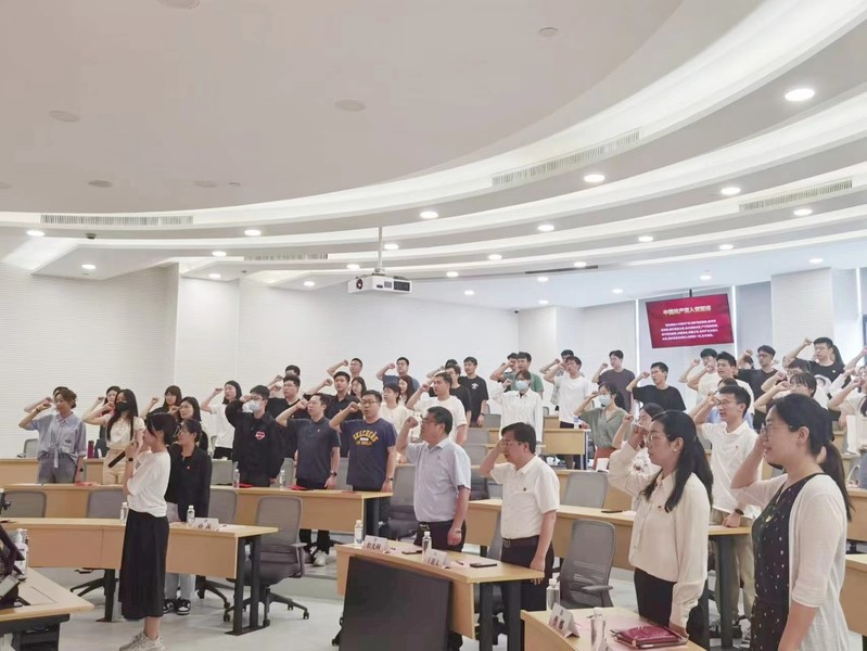 最后,全体党员重温入党誓词,由毕业博士生党员黄靖瑶领誓。