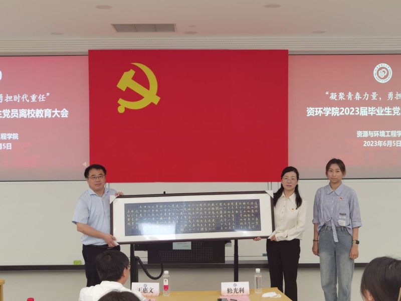 学院党委书记修光利总结发言,他指出在“六五环境日”当天举行毕业生党员教育非常有意义,今年世界环境日的中国主题是“建设人与自然和谐共生的现代化”,资环学子肩负着推进生态文明建设的重大责任和使命,要以实际行动践行绿水青山低碳环保理念,为美丽中国建设做贡献。同时,他结合习近平总书记在中共中央政治局第五次集体学习时的重要讲话精神、第二十届中央国家安全委员会第一次会议精神和习近平总书记在文化传承发展座谈会上的重要讲话精神,给学生们上了一堂微党课,勉励毕业生党员不断增强“四个意识”、坚定“四个自信”、做到“两个维护”,坚持发扬斗争精神,坚持并不断发展总体国家安全观,传承中华优秀传统文化,要做可堪大用、能担重任的新时代青年人才,为国家高质量发展贡献青春力量。