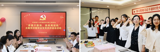环社20级本科生、预备党员薛诚皓同学为毕业生党员献唱《凤凰花开的路口》,祝福毕业生党员前程似锦、鹏程万里。毕业生党员李书馨活动后饱含深情地说:“党组织的深切关怀将永远铭记于心,虽然即将离开学校,但将牢记党员身份,在今后的工作岗位上发挥先锋模范作用。”