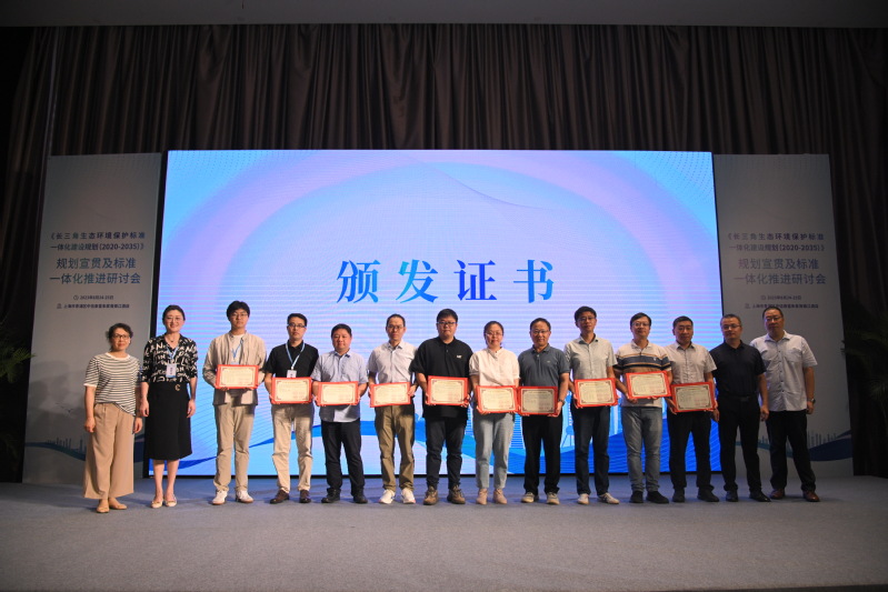 上海市生态环境局副局长吴启洲出席致欢迎辞,并与三省一市的生态环境厅(局)代表共同启动《规划》发布仪式。会议宣读了长三角区域生态环境保护一体化第一届专家咨询委员会委员名单,由吴启洲副局长为咨询委员会授牌,必赢242net官网修光利教授作为委员会代表上台接牌。会议为已发布的《制药工业大气污染物排放标准》等9项长三角一体化标准的编制人员颁发了荣誉证书,并宣读了三省一市生态环境厅(局)《关于开展2024年长三角区域统一地方标准项目征集工作的通知》,号召社会各界踊跃参与长三角生态环境保护标准一体化的建议和编制工作。