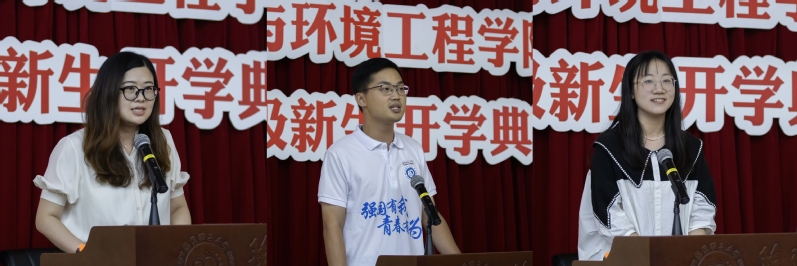 环境203班的章路瑶作为本科生老生代表发言,将大学比拟为养成游戏,鼓励新生从学习、科研、实践等方面,丰富个人属性加点,以坚韧不拔的意志乘风破浪,以心系祖国的情怀让青春远航。