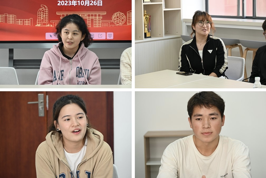 18位来自藏族、维吾尔族、蒙古族等少数民族的同学们依次发言介绍了在校生活学习情况,并对学校、学院提供的帮助和关爱表示诚挚感谢,大家还围绕生涯发展和规划进行了交流。 买吾兰·吐尔汗江同学分享了自己的学习经验,提到自己平时在完成好学业的基础上,发挥自身特长参加团学组织,进而提升多方面能力;李晓琛同学谈到,通过努力已找到了适合自己学习方法,后续想继续考研深造。