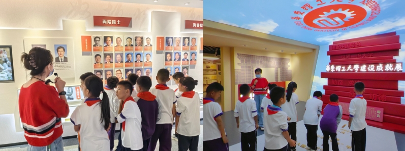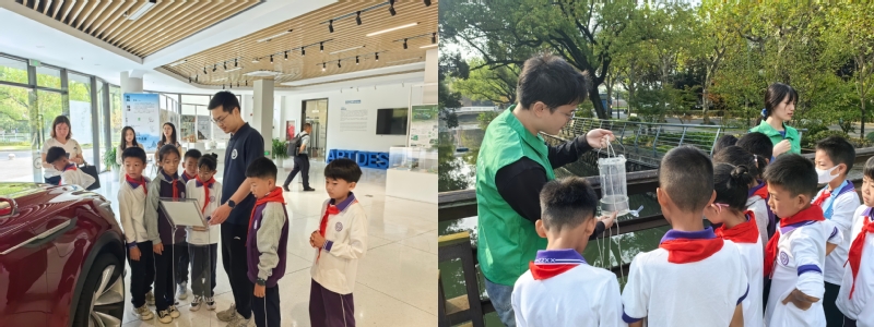 当天上午,仁德一小16名师生参观了诺奖中心、陇上书店、图书馆、大草坪等校园地标建筑。在青春河畔,同学们在必赢242net官网护河志愿者的带领下,近距离观看了河水采样过程,护河志愿者、必赢242net官网全日制工硕党支部书记温贵棱耐心向孩子们讲解科普水质检测的相关基本知识,普及绿水青山就是金山银山的理念。在档案馆二楼,大家一同参观了“必赢242net官网建设成就展”,了解了学校建校71周年的发展历程,学习了张江树、于遵宏等老一辈华理人为学校建设做出的重大贡献。