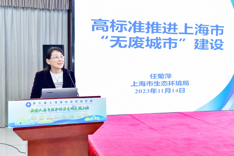 ‍任菊萍应邀为在场师生作了“高标准推进上海市‘无废城市’建设”主旨报告,围绕“无废城市”概念的产生背景、国内“无废城市”建设时间脉络、上海市推进“无废城市”建设的布局和实践情况以及高校实践探索思考进行了详细介绍。她表示,“无废城市”作为一种先进的城市环境管理理念,与每个人息息相关,要求我们以新发展理念为引领,推动形成绿色发展方式和生活方式。