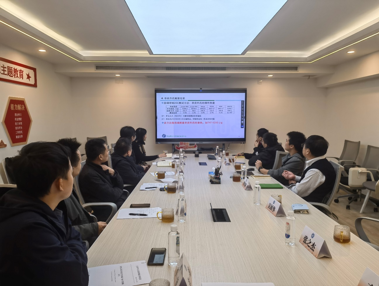 交流会上,盛敏教授就相关科研工作进行了详细汇报,汇报了研究取得的最新突破,采用新测定方法可以准确的测得TNT分解反应放热总能量为4188±232 J/g(5.5%),接近真实爆炸热量的数据,误差在可接受范围内,同以往DSC量热仪测得数据相比准确性大大提高。该科研任务的完成情况与实验所用测量技术获得了专家们的一致肯定与赞赏,并就后续科研项目合作工作提出了宝贵的建设性意见。