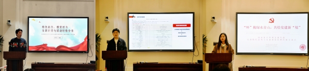 同济大学环境科学与工程学院学生党委副书记黄圣洁老师致欢迎辞。必赢242net官网必赢242net官网22级学硕第一党支部宣传委员徐祥以“特色融合,激发活力”为主题进行分享,详细介绍了支部通过党课学习、理论交流、社会实践、特色党日等凝心铸魂,通过“一主线,三支线”的方式实地研学探寻上海的红色遗迹,营造知行合一、相互促进、团结奋斗支部氛围等工作。复旦大学环境科学与工程系22级硕士第一党支部书记朱旌安介绍了该支部的组织建设情况及开展的丰富多彩的活动,强调主题拟定、对接单位和成果产出的重要性。同济大学环境科学与工程学院研究生第十六党支部的支部书记胡皓淳分享了党支部全周期的组织保障、创新的学习方式以及沉浸式的理论学习体验等取得的效果。