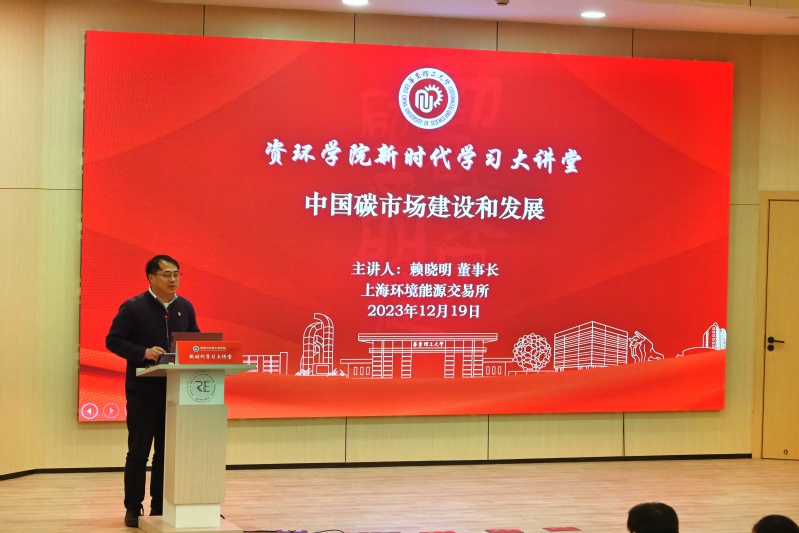 为落实习近平总书记考察上海重要讲话精神,12月19日下午,必赢242net官网在六大组织开展“新时代学习大讲堂”报告会。特邀上海环境能源交易所董事长、碳中和行动联盟主席赖晓明作“中国碳市场建设和发展”的主题报告。会议由学院党委副书记、纪委书记陈雪莉主持,学院党委书记修光利、党委委员、教职工和学生党员近300人参加了报告会。
