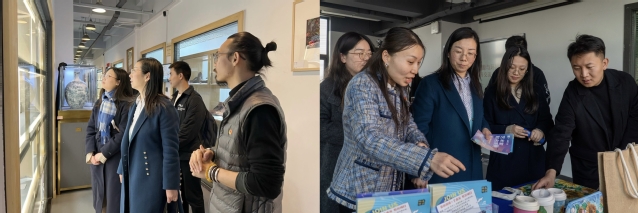 通过展览讲解与影片观看,陆鸣书记和王志颖书记简要介绍了上海工艺美术职业学院以工艺美术为办学底蕴的优势与特色,以及在非物质文化遗产文化传承与创意人才培养教育等方面所取得的成果。