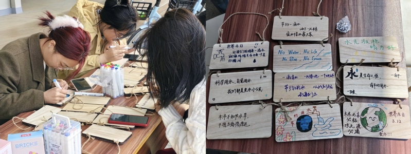 在奉贤校区,学院青志协组织开展“守生命之源 护万顷碧水”主题宣传活动,通过互动答题、“节约用水”标识绘制等,将美育元素融入生态文明实践和理念宣传中,学生反响热烈。