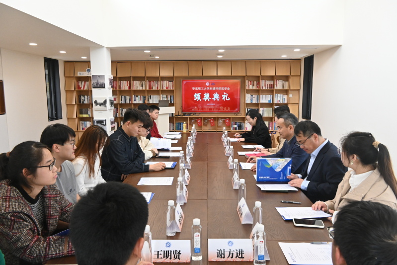 张卫忠、修光利及王芝眉为获奖学生颁发证书。随后,同学们分享了自己在学习、生活及未来工作等方面的感悟和计划。大家表示,这份荣誉不仅是对他们过去努力的肯定,更是对他们在环保领域继续探索和创新的鼓励,将不辜负学校和企业的培养与期望,将始终秉承“绿水青山就是金山银山”的理念积极投身环保事业。