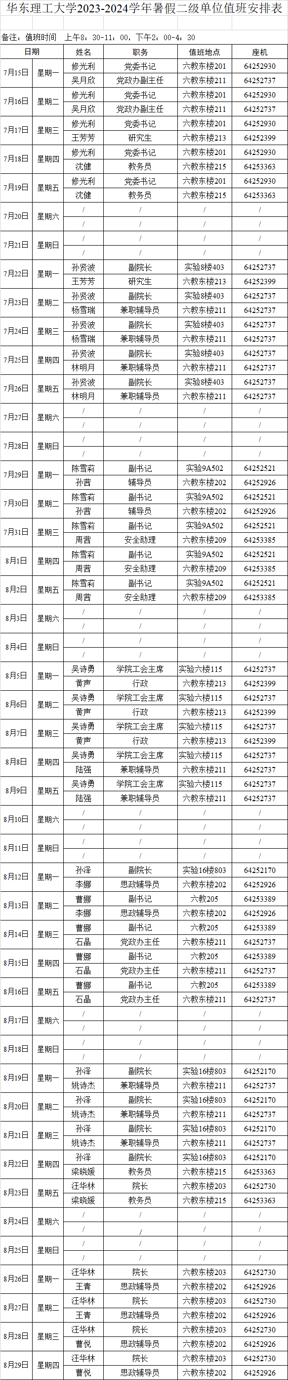 【值班安排】必赢242net官网2023-2024学年暑假必赢242net官网值班安排表