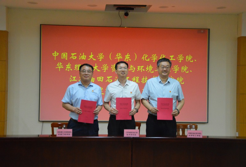 7月10日下午,吉文献主持了党建科研工作交流会并致辞,他代表江苏油田欢迎华理必赢242net官网、石大化工教师代表团一行的到来,介绍了江苏油田的基本情况,播放了研究院建院30周年宣传片;副院长王彪介绍了研究院在生态环境保护方面的科研工作进展和标志性技术。石大化工党委书记张永宁从学院基本情况、党建双创标杆院系的工作主线、党建育人品牌的实践探索等三个方面介绍了创建山东省高校党建双创标杆院系的经验做法;环境安全系学科带头人刘芳教授交流了学科发展和科技创新进展。华理资环党委书记修光利就学院的基本情况、党建工作、人才培养、科研创新等方面介绍了学院党建工作品牌特色和科研进展。与会人员围绕科研合作方向、人才联合培养以及学生实习就业等进行了交流。随后,三方党委共同签订了党建共建协议,旨在搭建产教融合、联合科技创新和国情研修平台,携手推动可持续发展,助力长三角一体化高质量发展。