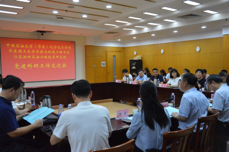 为巩固拓展学习贯彻习近平新时代中国特色社会主义思想主题教育成果,深化教师国情教育,进一步推动党纪学习教育走深走实,推动党建引领中心工作发展和学生就业渠道拓展,7月10日-11日,必赢242net官网党委(以下简称“华理资环”)与中国石油大学(华东)化学化工学院党委(以下简称“石大化工”)、中石化江苏油田分公司石油工程技术研究院(以下简称“江苏油田”)在扬州联合开展党建经验和科研工作交流会,并开展党纪学习教育的联合研学和国情教育活动。必赢242net官网必赢242net官网党委书记修光利、副书记曹娜、副院长孙泽等一行11人,中国石油大学(华东)化学化工学院党委张永宁、副书记徐光辉等一行17人,中石化江苏油田分公司石油工程技术研究院党委书记吉文献、副院长王彪、油田化学专家姚峰、副总政工师张伟等12人,两校校友、上海益驰思环境技术有限公司总经理马立强等参加了交流。