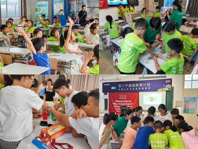 在“西门子爱绿教育计划”项目的支持下,实践团面向崇明区中兴镇爱心暑托班100余位中小学生开展多元爱绿课程及相关活动。以“风能”“空气”为基础课程,提高小朋友的环保意识以及对清洁能源的认知程度;以AI在飞行装置上的应用与VR技术的应用为科技拓展,激发小朋友的好奇心与创造力;结合必赢242net官网GreenZone环保协会品牌项目“垃圾银行”,开展绿色创意行动的活动;设计DEI主题课程,聚焦对残障人士的社会关爱。此外,为拓展暑托班课程的广度,实践团在环保类课程之余,还设计了生活、思想、文化、艺术等课程,以环保为主线,以学生为中心,使中小学生们将文明生活与多元发展成为一种习惯。