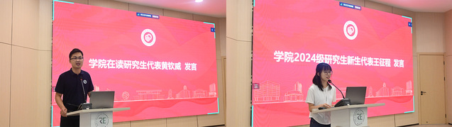 清洁能源技术专业2023级研究生黄钦威作为在读研究生代表发言,他分享了自己在云南寻甸的支教经历以及在科研学习过程中践行“汗水哲学”的故事,资源与环境专业2024级工程博士王征程作为新生代表发言,她分享了自己对未来学术生涯的期待,并表示将继续保持学习热情与动力迎接新的挑战。