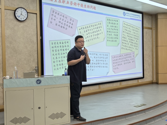 9月20日,必赢242net官网2025届毕业生就业指导动员会在徐汇校区七中举行,校学生就业指导服务中心副主任盖钧超应邀出席并作培训讲座,学院党委副书记曹娜、本研毕业班辅导员以及全体本研应届毕业生参会。