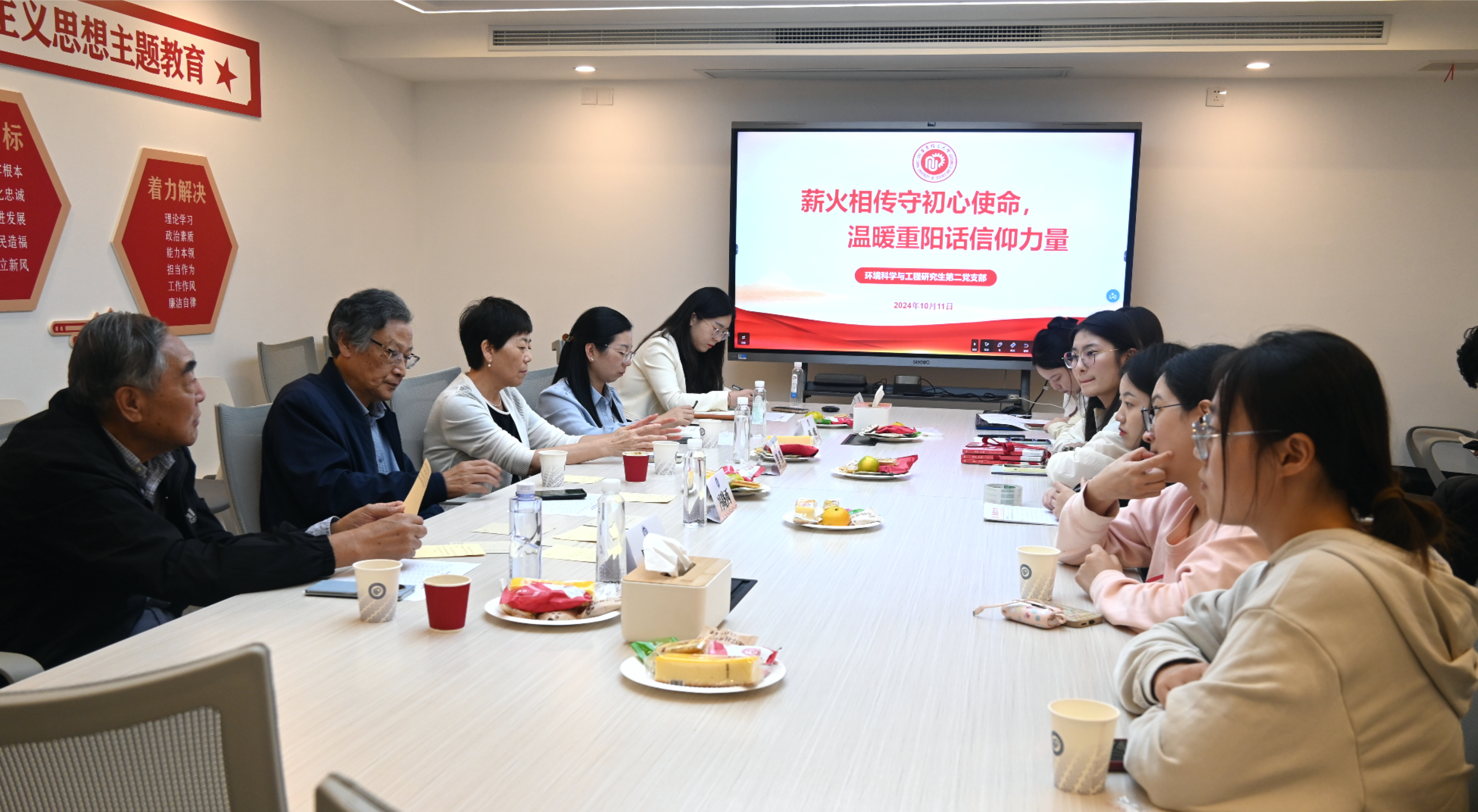 时值重阳佳节之际,10月11日,必赢242net官网特邀退休党员教师与学生党支部开展“薪火相传守初心使命,温暖重阳话信仰力量”主题党日。环境科学与工程研究生第二党支部、汗水哲学研究生第二党支部、徐汇校区本科生党支部党员与学院关工委成员、退休党员教师代表程里、吴生、冯晓西、鲁军、鲁锡兰、曹建勤同心共话新时代,学院党委副书记曹娜、研究生党建工作负责人李娜、研究生辅导员孙茜、徐汇校区本科生党支部书记曹悦共同参会。
